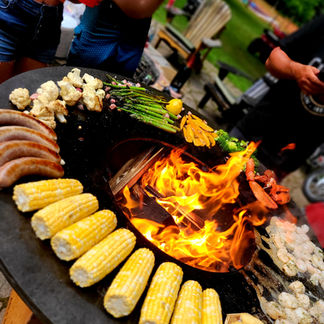 Our grill concept seamlessly marries the allure of a campfire, the precision of a plancha (akin to a direct-contact frying pan), and the delectable flavors of a barbecue.